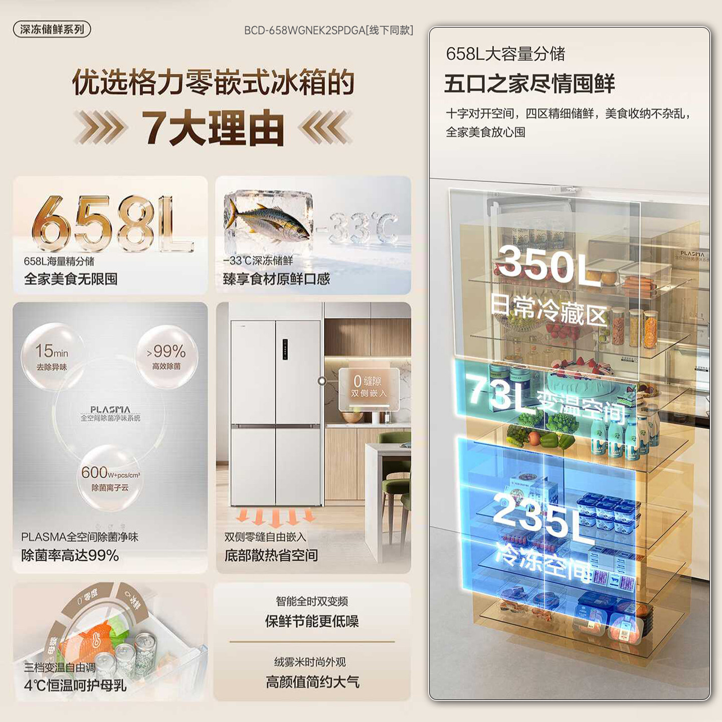 格力十字对开门嵌入式零嵌入冰箱658L除菌净味变温大容量一级变频