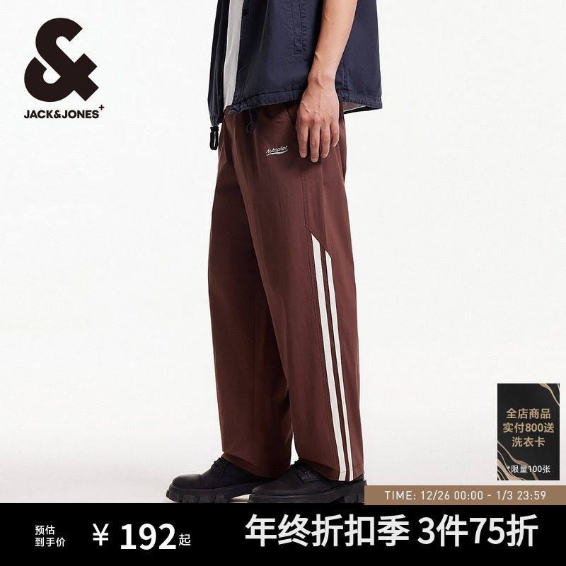 杰克琼斯男装新款宽松阔腿机车风织带伞兵裤休闲裤长裤子秋季男款