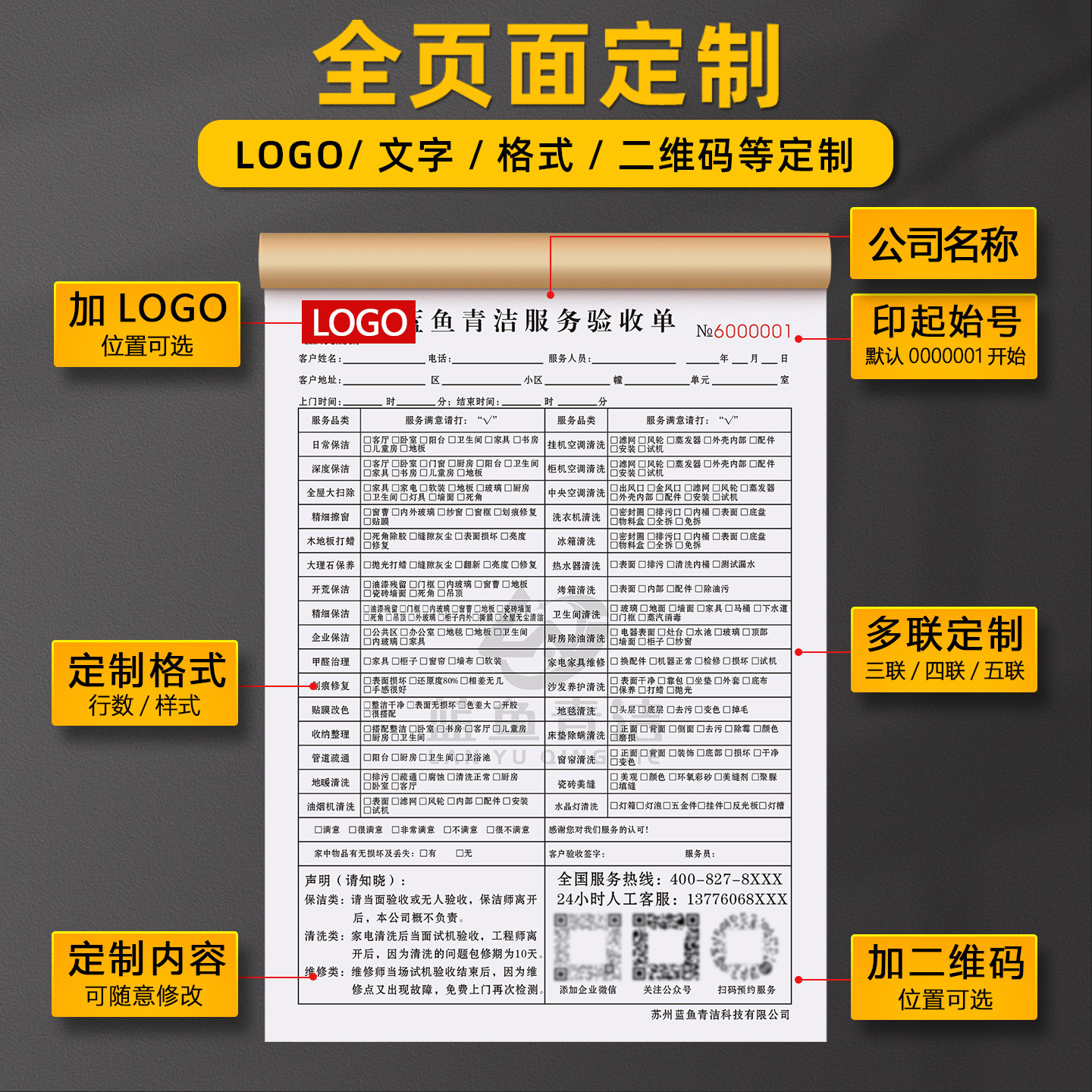 【保洁验收单】家政公司上门清洁维修派工单家电清洗安装结算清单
