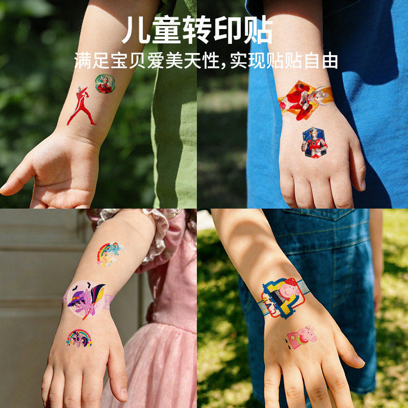 正版小猪佩奇纹身贴儿童卡通女孩转印贴安全可洗宝宝可爱防水持久小马宝莉手臂转印贴纸玩具3到6岁奖励贴贴画