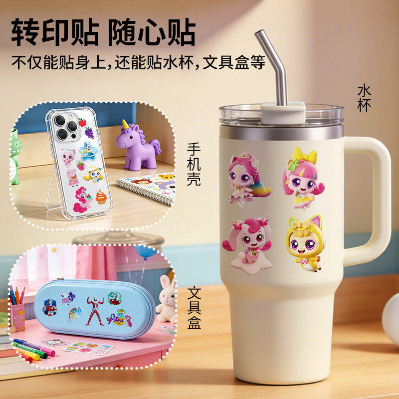 300张女孩贴纸手账卡通ins风PVC儿童粘贴咕卡手机壳透明防水贴画
