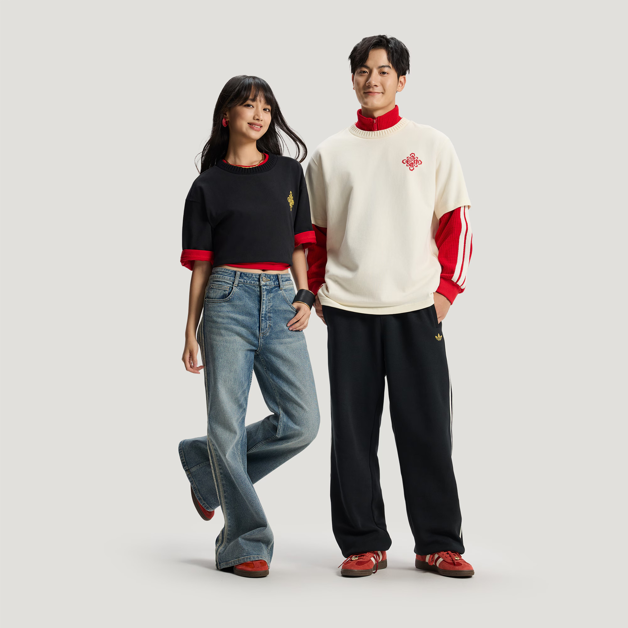 阿迪达斯三叶草短袖26马年新年款情侣棉质运动宽松圆领T恤 KT0714