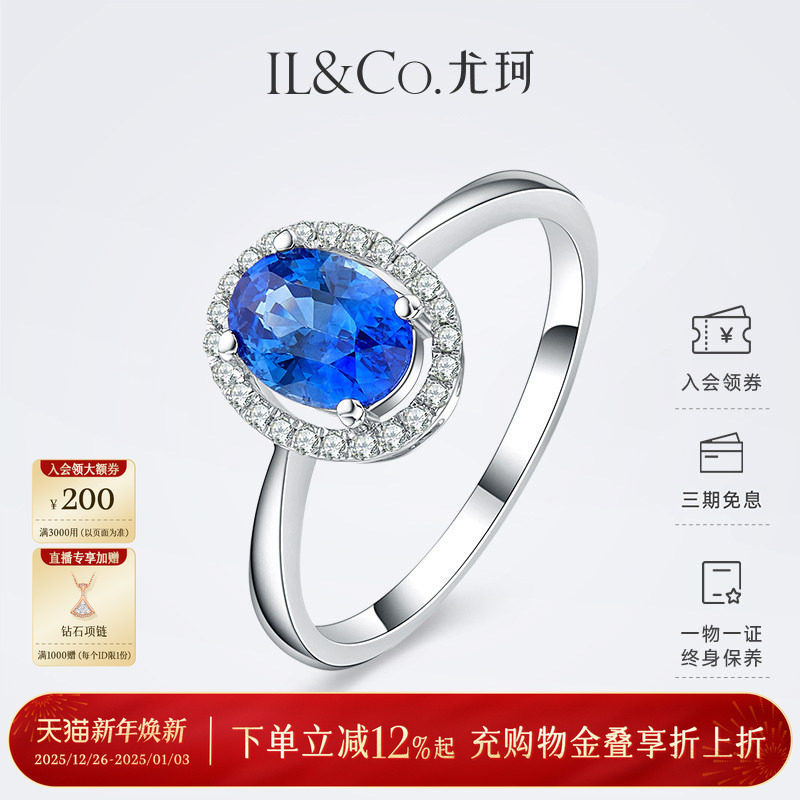 ILCO尤珂「星蓝之约」白18K金天然蓝宝石戒指1克拉镶嵌钻石女戒