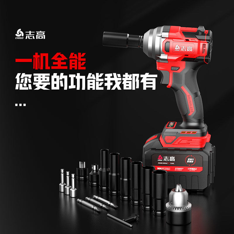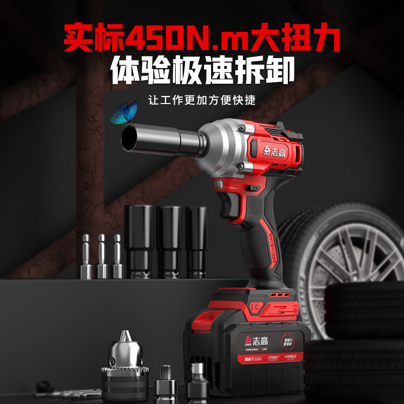 志高无刷电动扳手大扭力轮胎汽修工具锂电风炮小型冲击充电板子