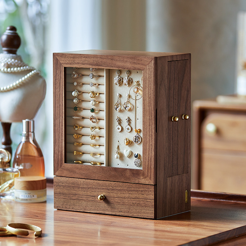 高档精致首饰收纳盒耳钉项链手串黄金大容量首饰盒实木饰品收纳盒