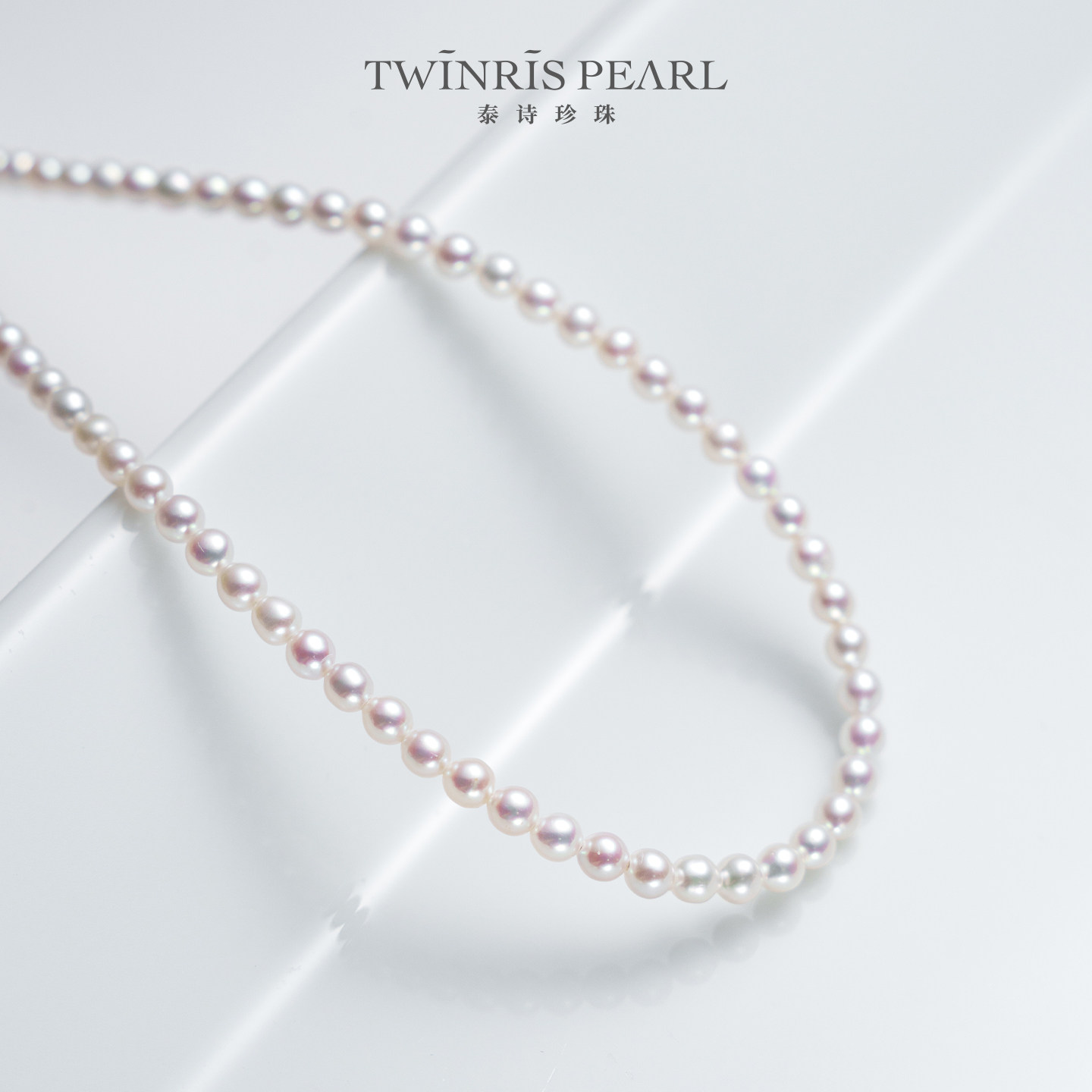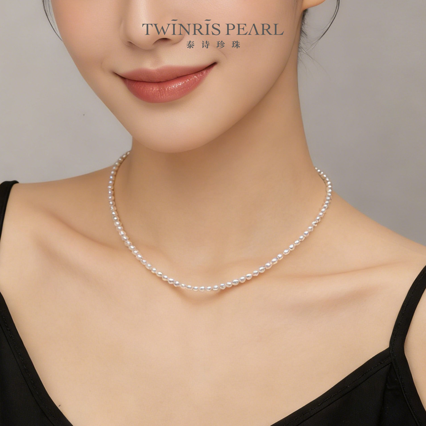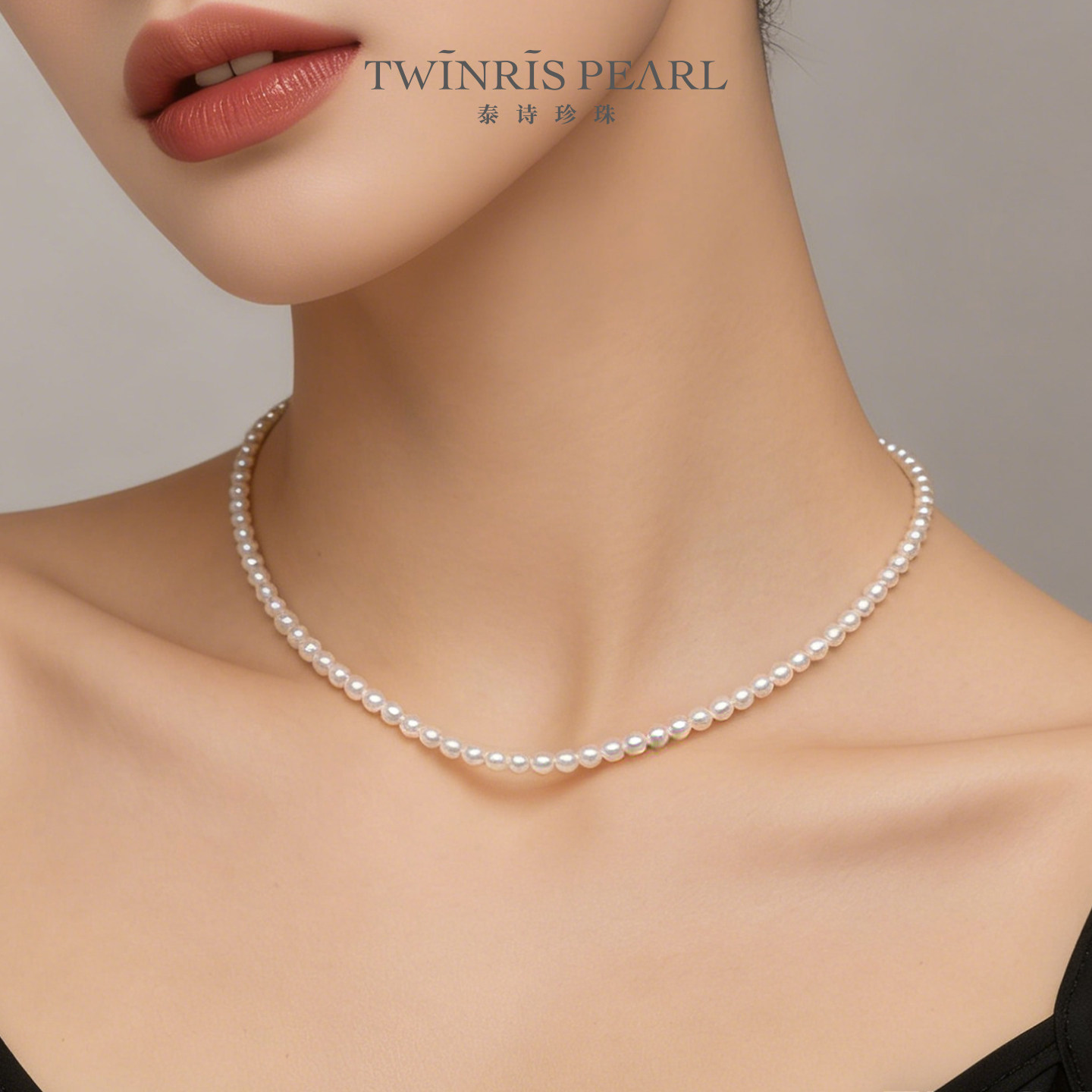 泰诗珍珠S925银淡水项链珠宝首饰3-4mm玉石山下湖正圆纯银海水