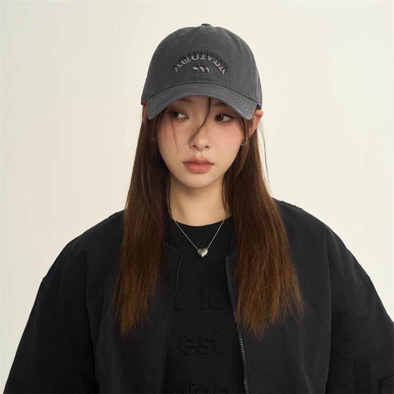 美式复古字母灰色棒球帽女高级感宽檐大头围显脸小百搭鸭舌帽子男