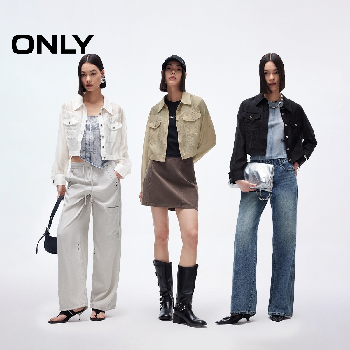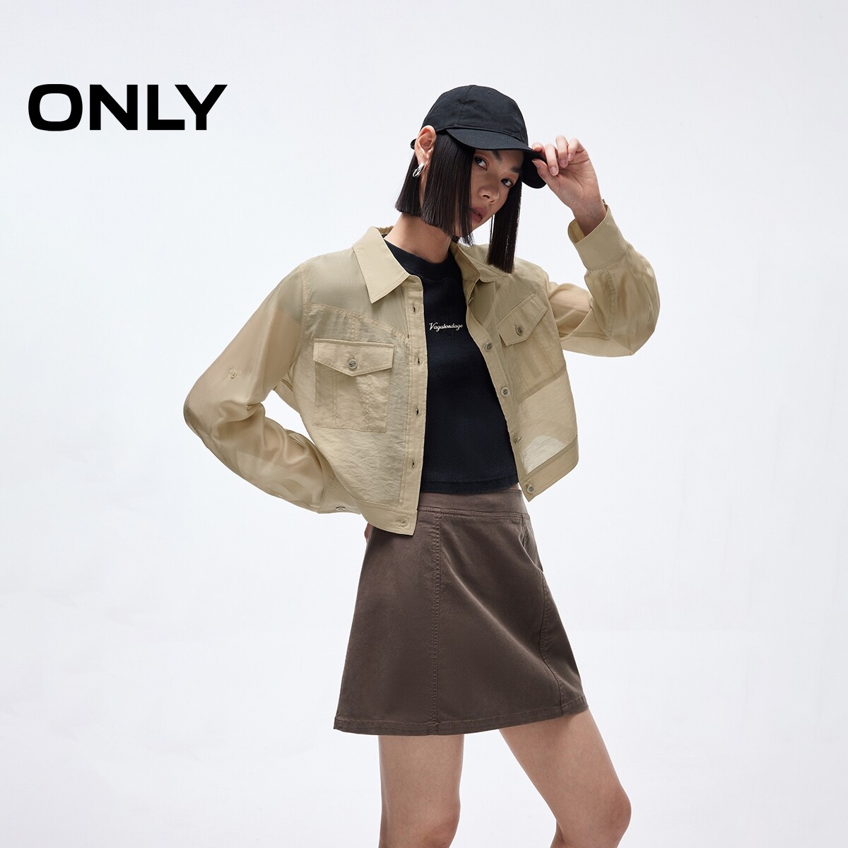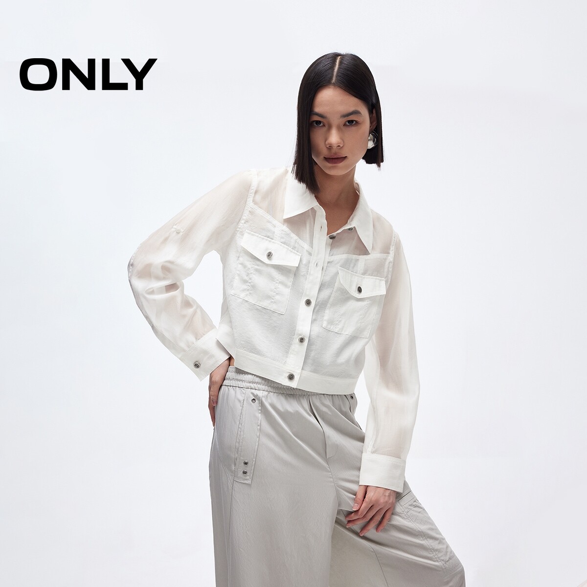 【ONLY奥莱】春款工装风纯色薄款正肩直筒版型短款翻领长袖衬衫女