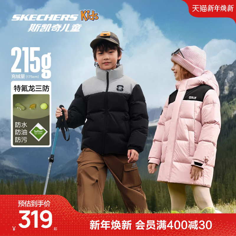 Skechers斯凯奇儿童小暖宝羽绒服冬季童装男女童三防保暖羽绒外套