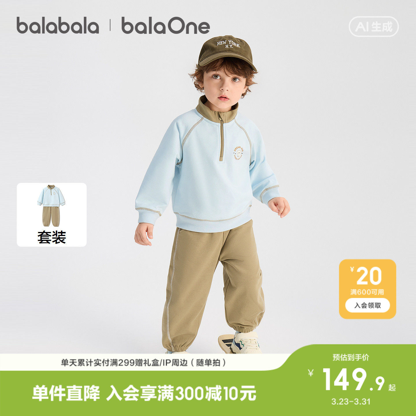 巴拉巴拉童装儿童套装女童宝宝男童两件套新款上衣2026春装舒适潮
