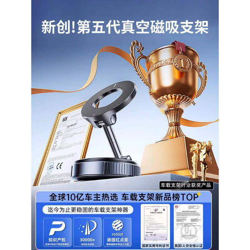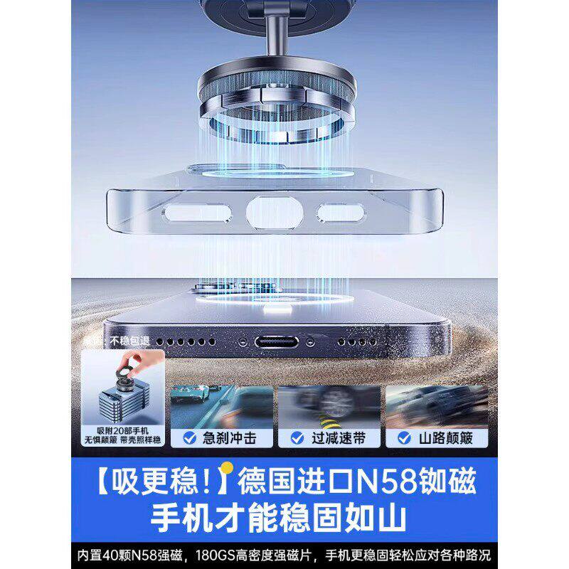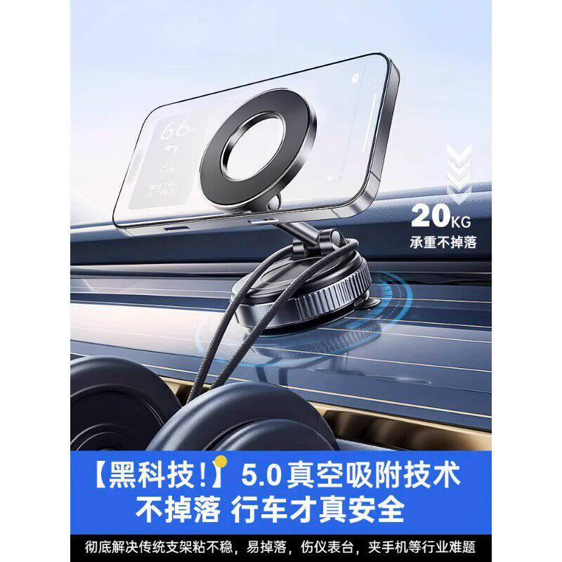 真空吸附磁吸车载手机支架2025新款吸盘车内导航手机架magsafe无线磁吸伸缩折叠便携架子墙壁通用神器