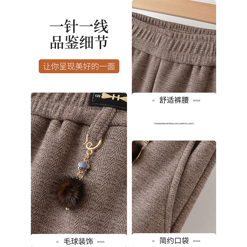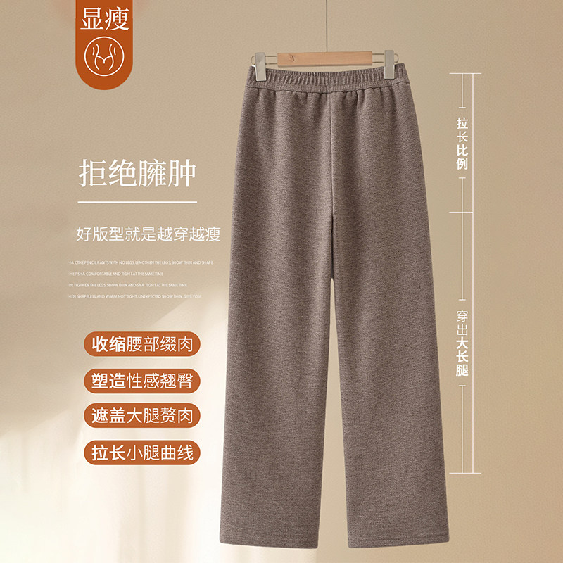 妈妈裤子春秋款松紧高腰弹力中老年女裤宽松大码直筒奶奶加绒长裤