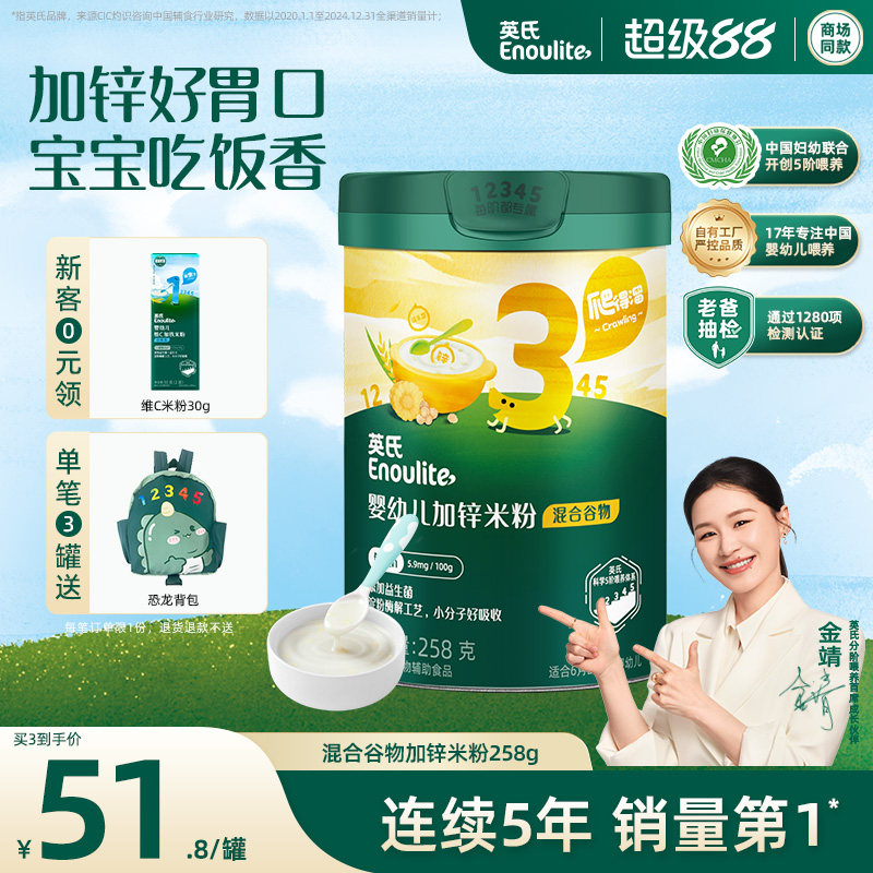 英氏婴儿加锌米粉 宝宝辅食营养米糊谷物果蔬味婴幼儿米粉3段