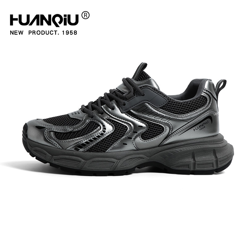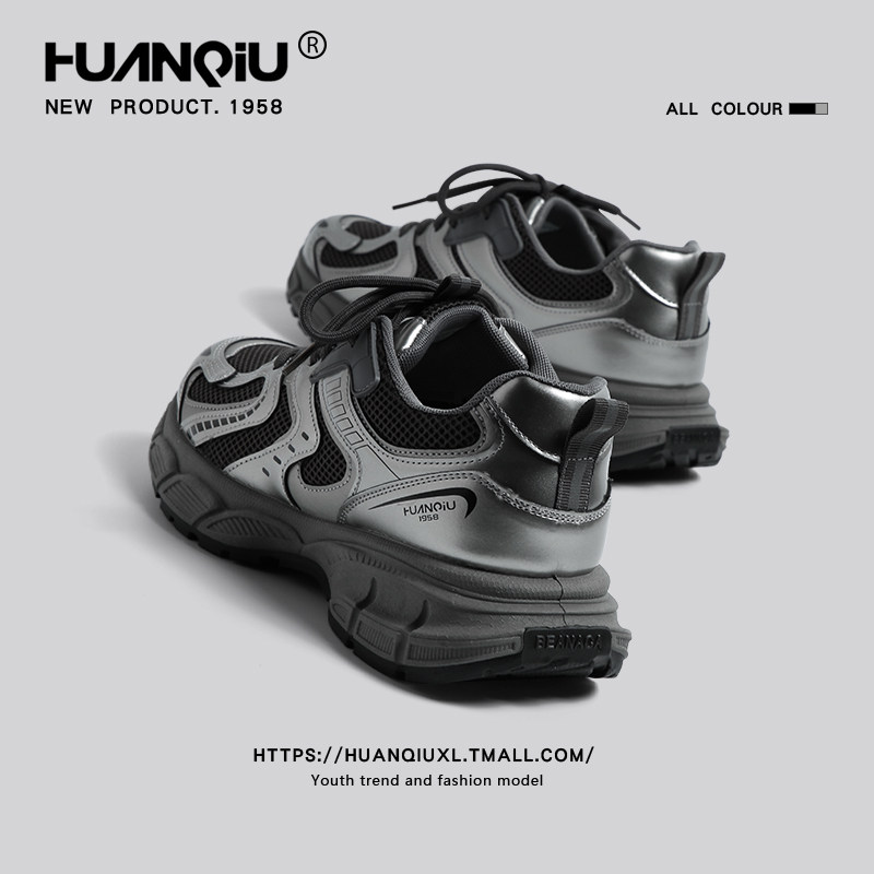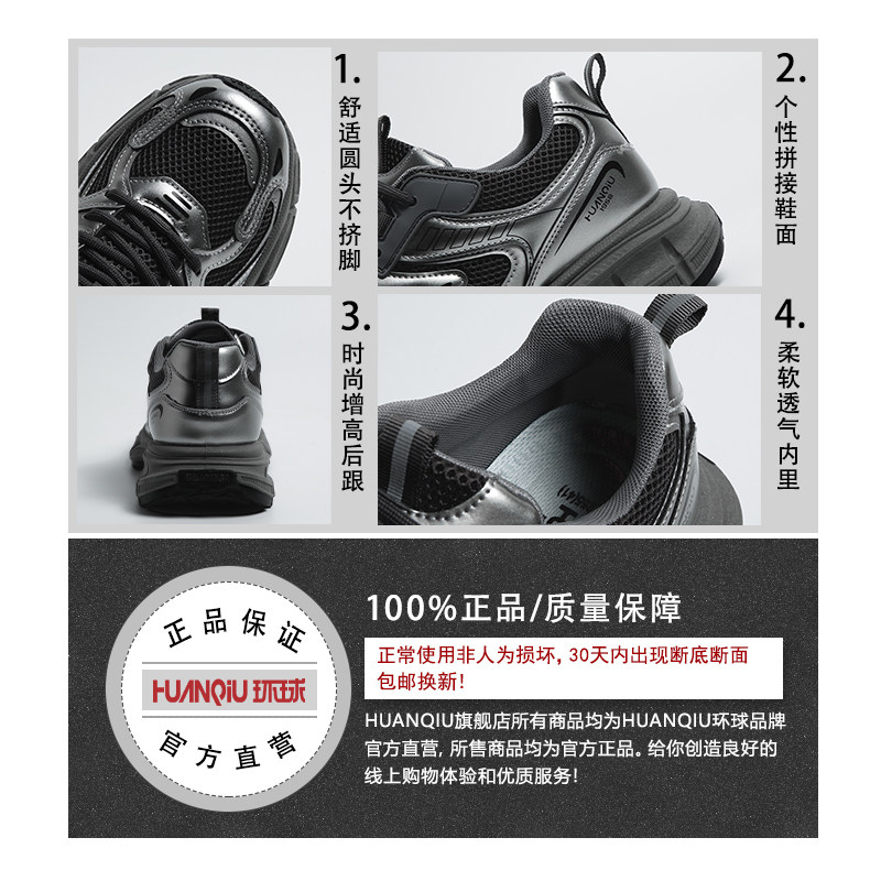 环球黑银厚底老爹鞋男款2026新款春季男士百搭运动风潮牌休闲鞋子