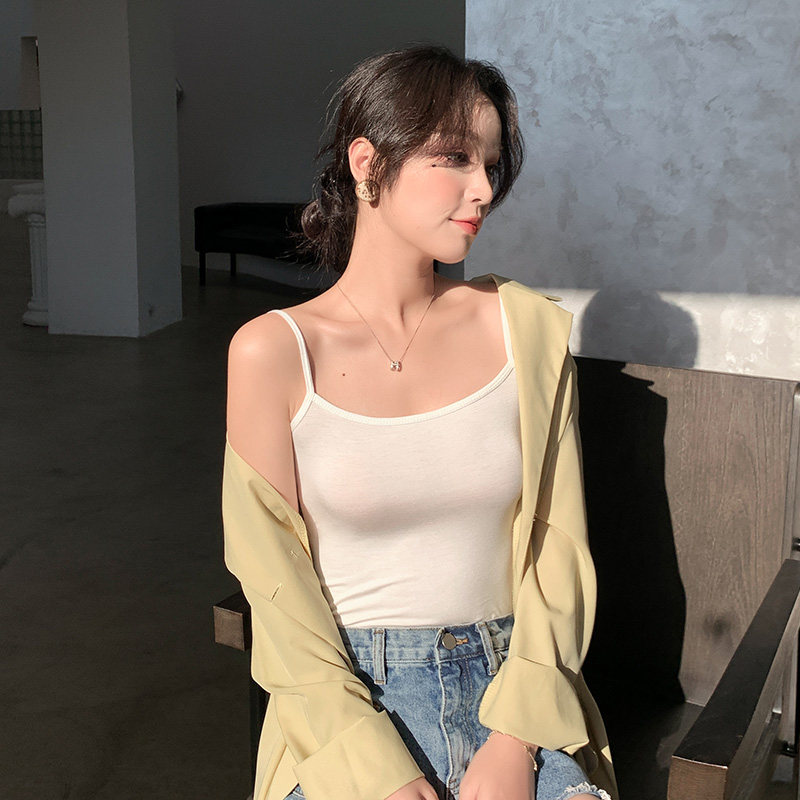 莫代尔无痕吊带背心女夏纯色简约薄款内搭宽松显瘦打底衫百搭外穿