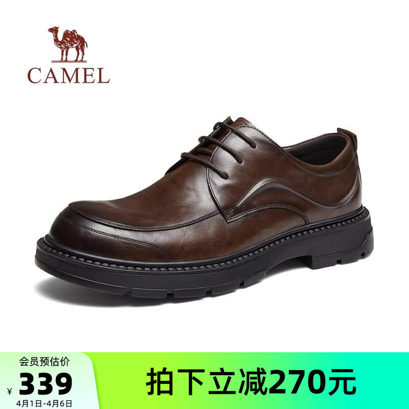 骆驼男鞋2026春季新款真皮时尚复古大头舒适德比鞋男商务正装皮鞋