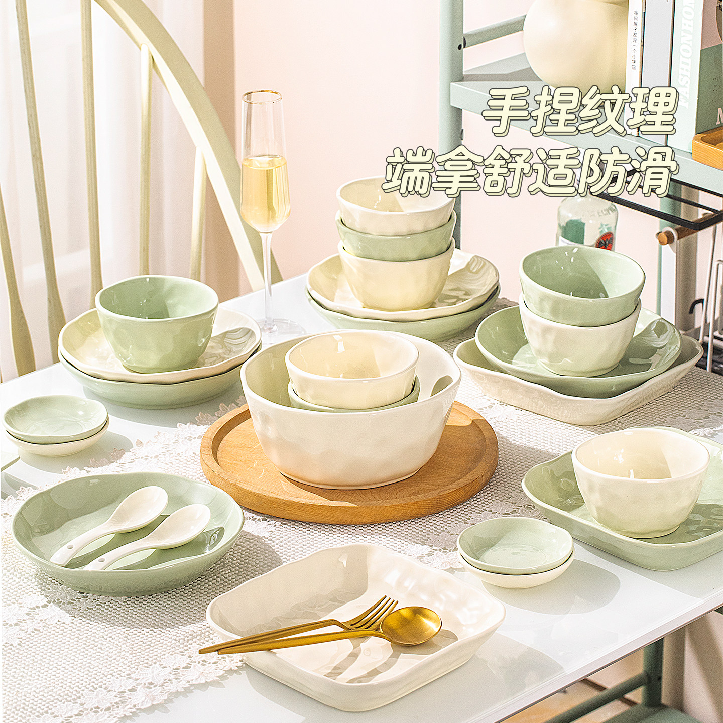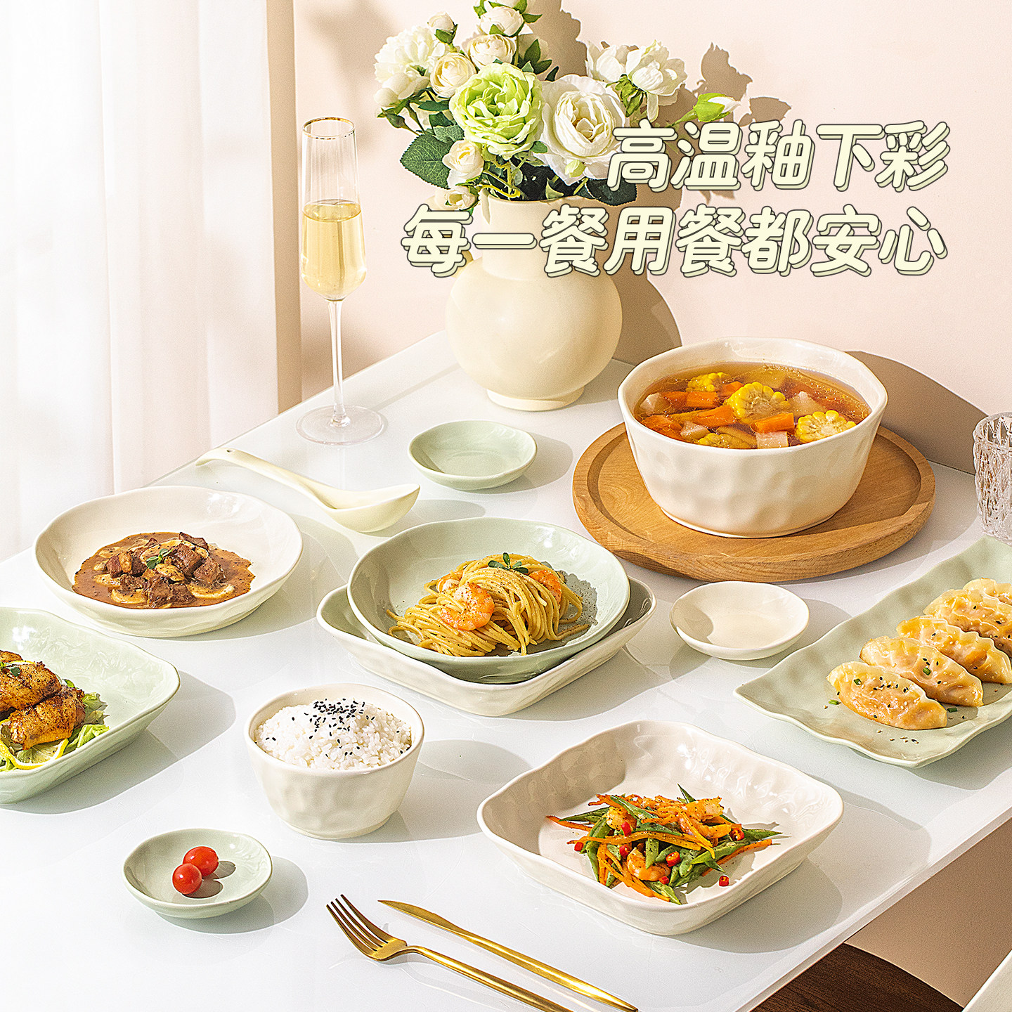 釉下彩碗碟套装家用2025高颜值奶油风餐具套装高颜值碗盘筷乔迁