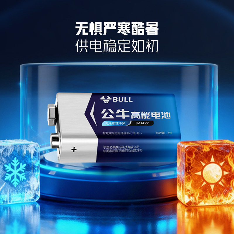 公牛9v电池方块电池6F22方形叠层遥控器无线话筒专用9伏万用表9号烟雾报警器振幅仪九伏碳性双头9V正品6f22型