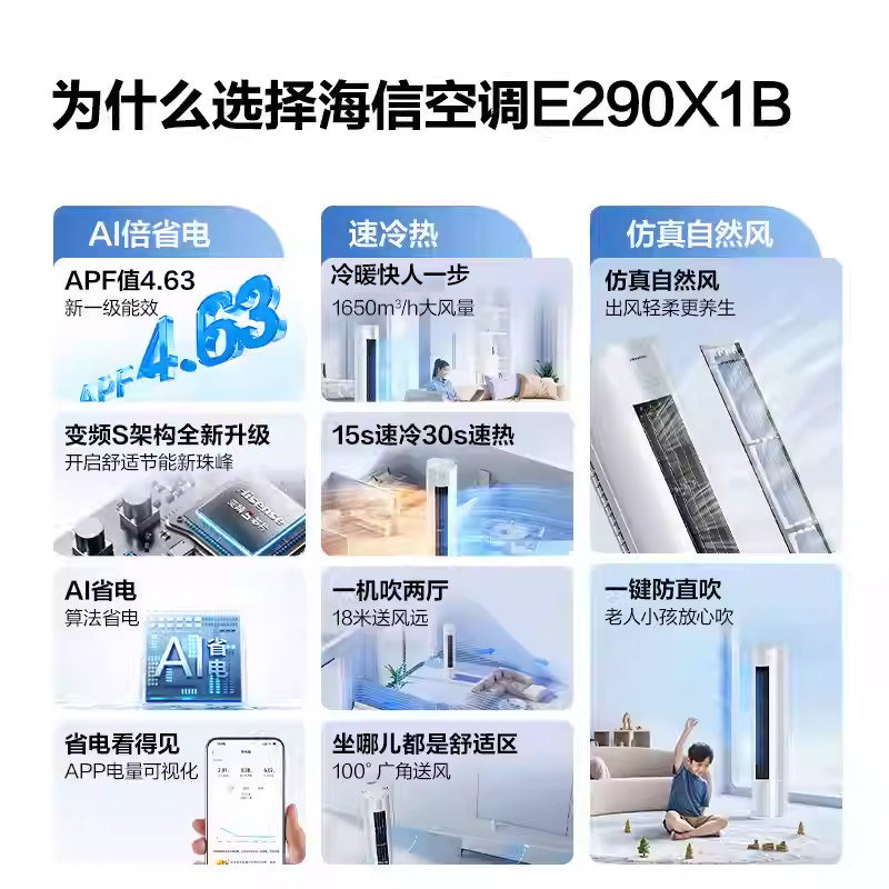 海信大3匹AI省电E290空调柜机一级变频家用立式客厅冷暖以旧换新