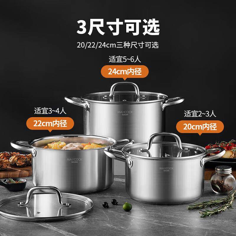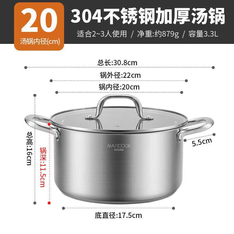 美厨汤锅304不锈钢汤锅汤煲20cm加厚复合底 电磁炉通用MCT8206