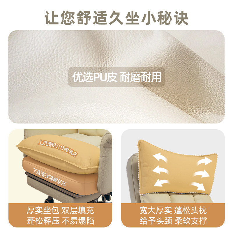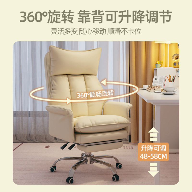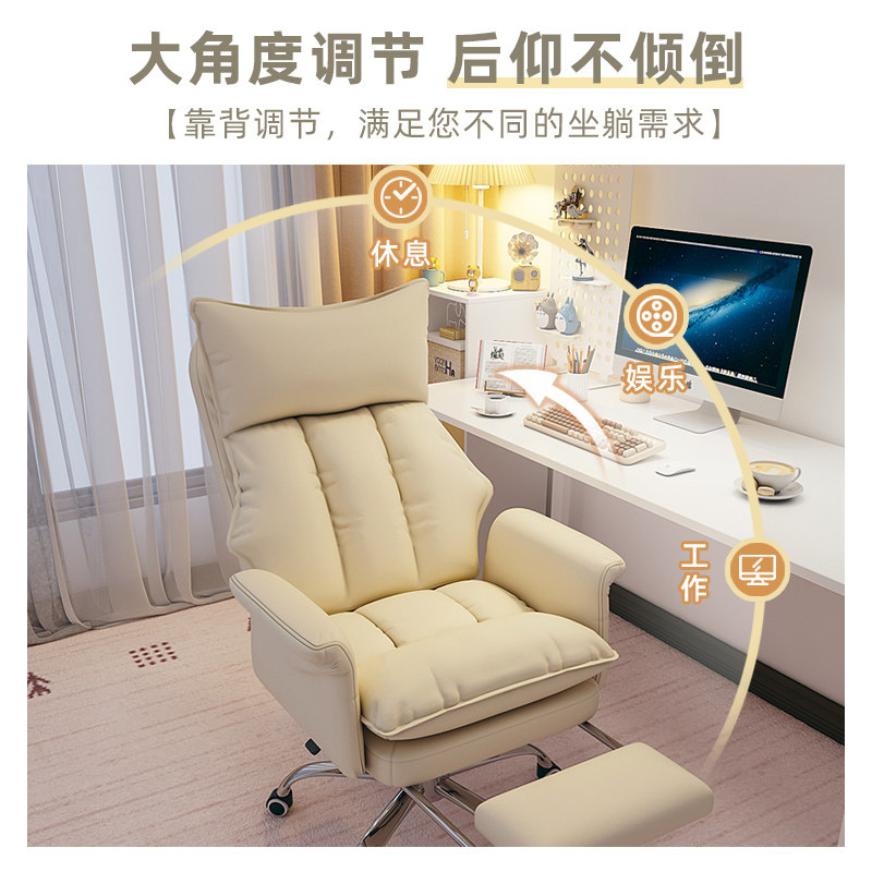 电脑椅家用舒适沙发椅懒人久坐可躺办公椅女生奶油风椅子卧室靠背