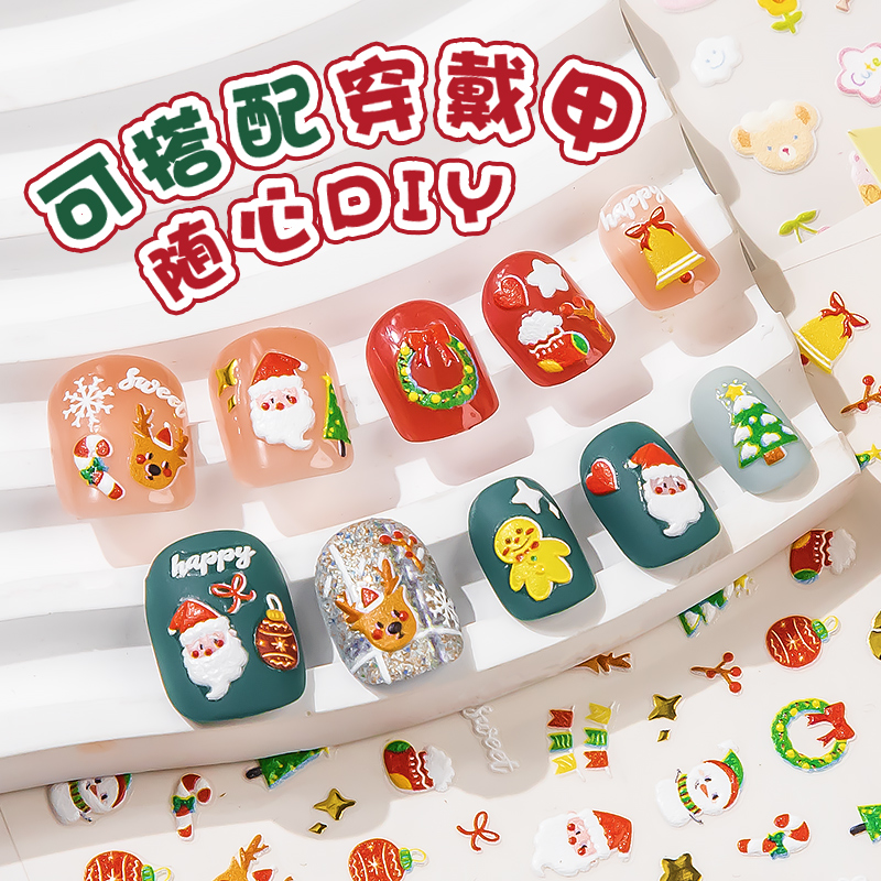 圣诞节卡通指甲贴~3d升级版5D立体浮雕设计~