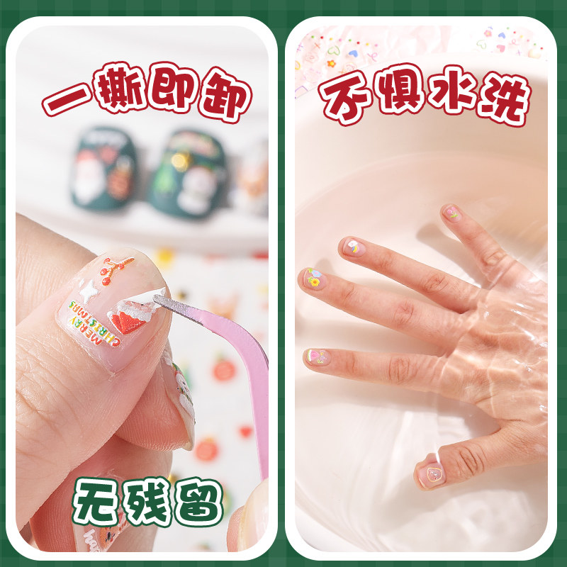 3d立体贴画圣诞节贴纸指甲贴儿童女孩卡通公主幼儿宝宝可爱美甲贴纸装饰防水无毒可撕小朋友指甲贴片创意玩具