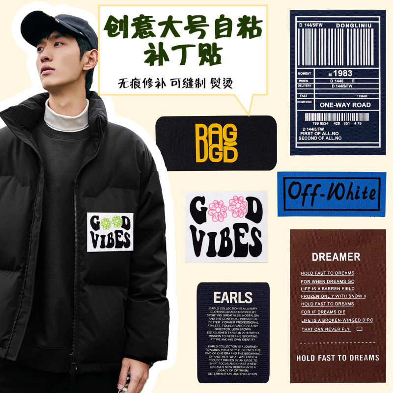 超大号羽绒服补丁贴自粘免缝可水洗字母外套破洞衣裤修复装饰贴