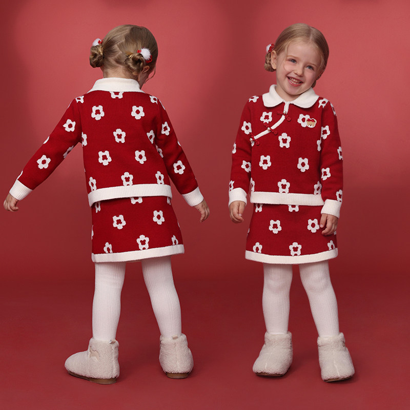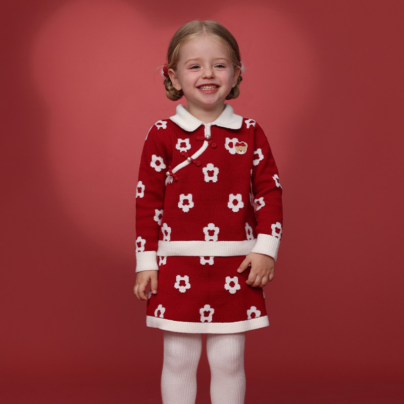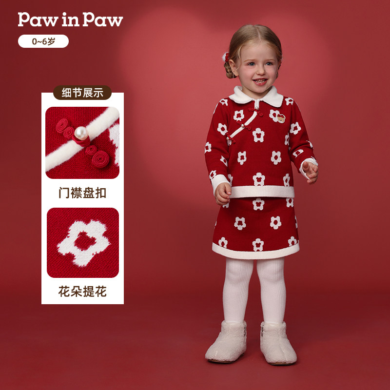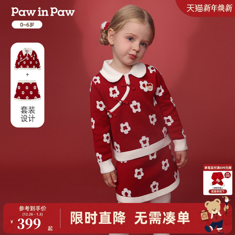 【新年】PawinPaw卡通小熊童装26年新款国风女宝宝毛织套装裙