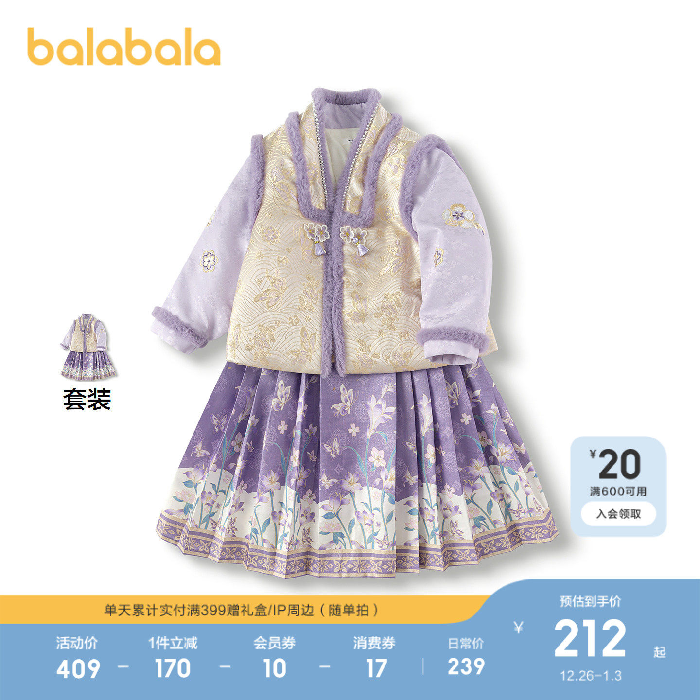 巴拉巴拉女童马面裙套装国风明制汉服秋冬两件套提花精致时尚洋气