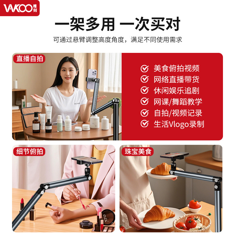 直播手机支架专用落地俯拍桌面美食手机架平板拍摄对镜悬臂架多功能磁吸专业拍照拍视频架子懒人ipad支撑架