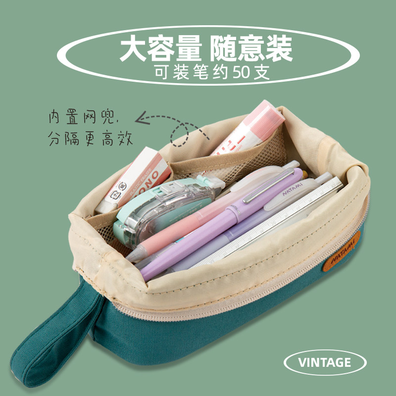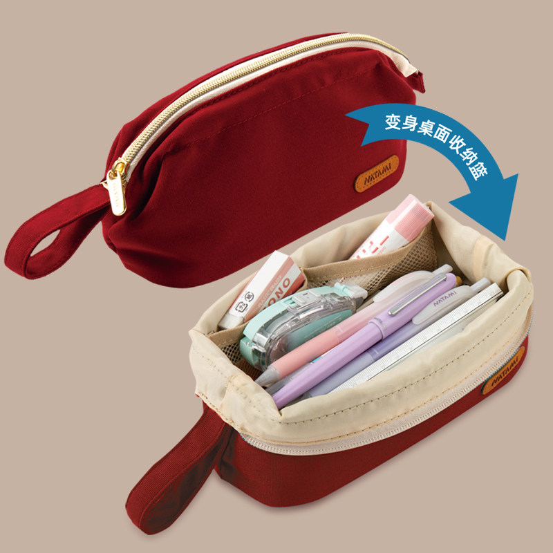日本NATAMI奈多美复古简约美式笔袋大开口巨能装多功能桌面收纳包