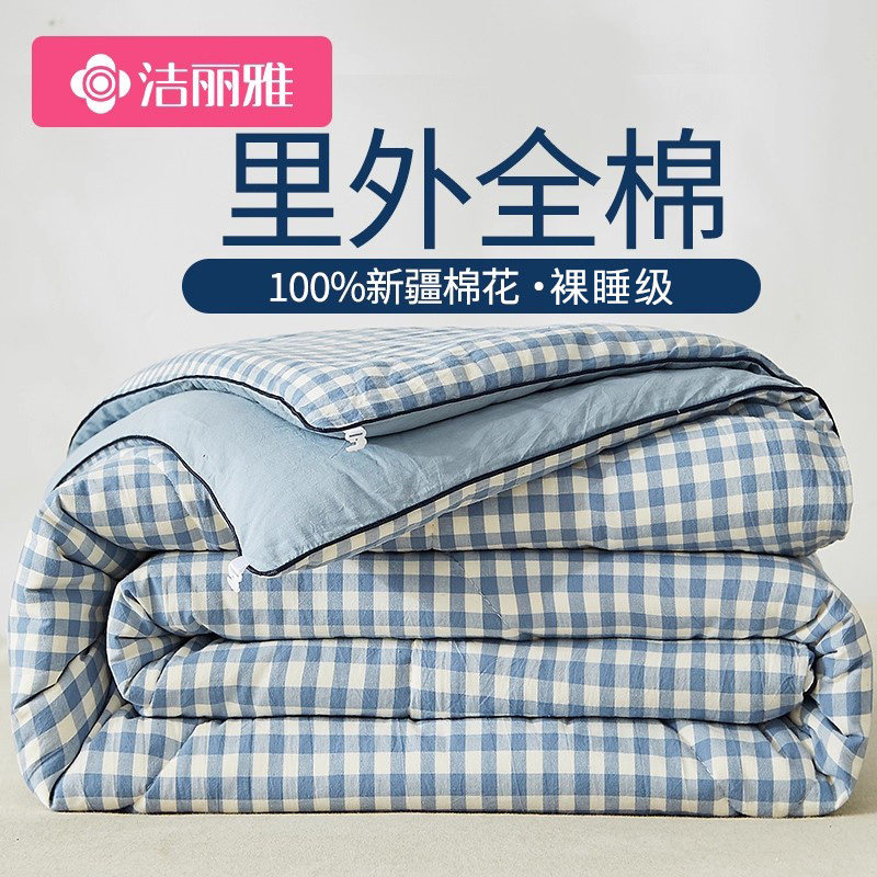 洁丽雅A类新疆棉花被全棉夏凉被可机洗单人纯棉空调被夏季薄被子
