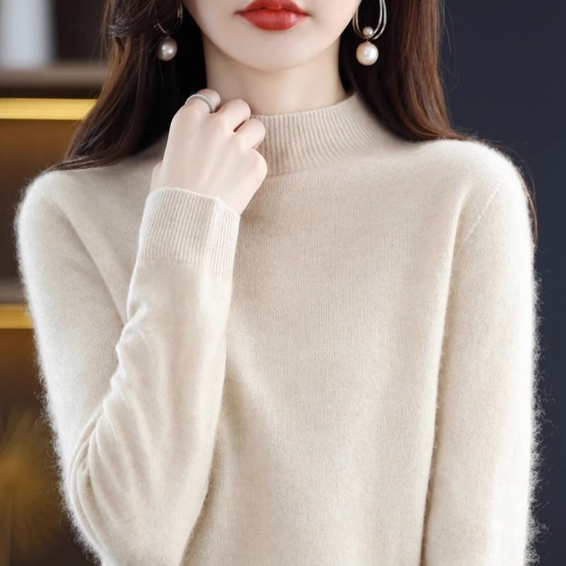 2025冬季羊毛衫女加厚宽松高级感加厚纯羊绒衫半高领打底毛衣内搭