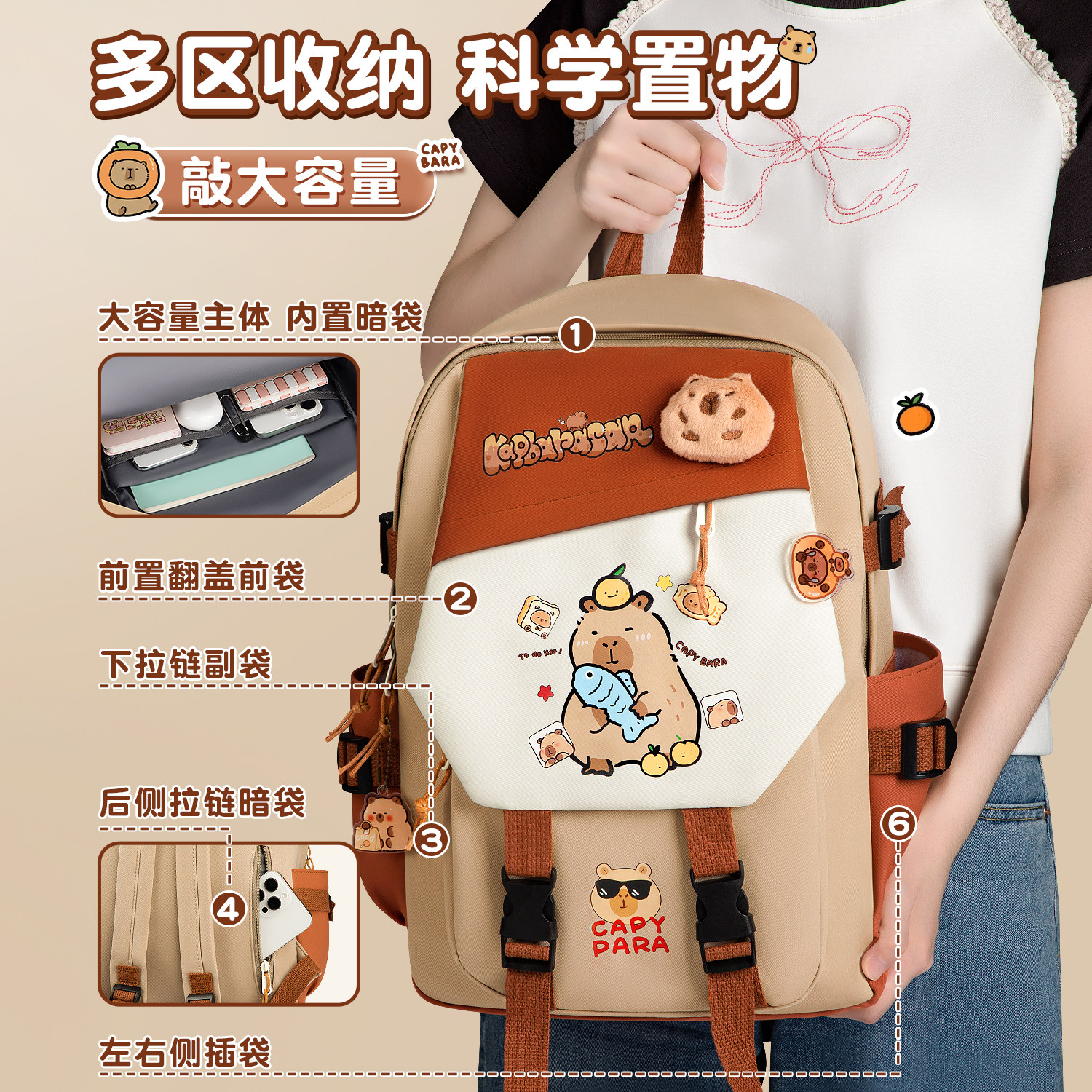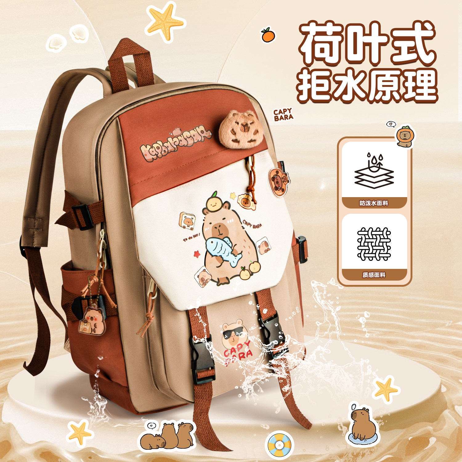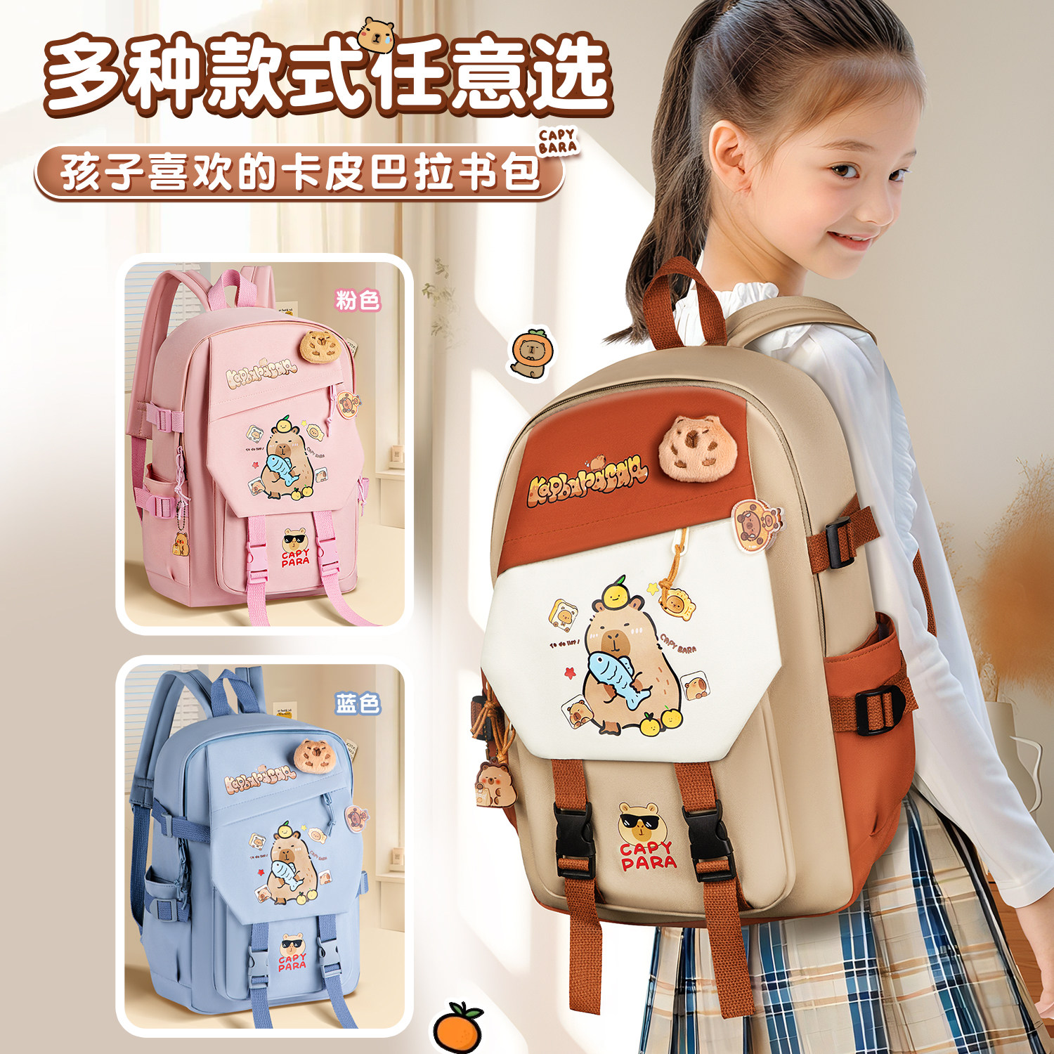 卡皮巴拉学生书包小学生减负护脊大容量大学生高颜值的书包神器吧啦双肩包3-6年级4-6年级儿童包双肩书包背包