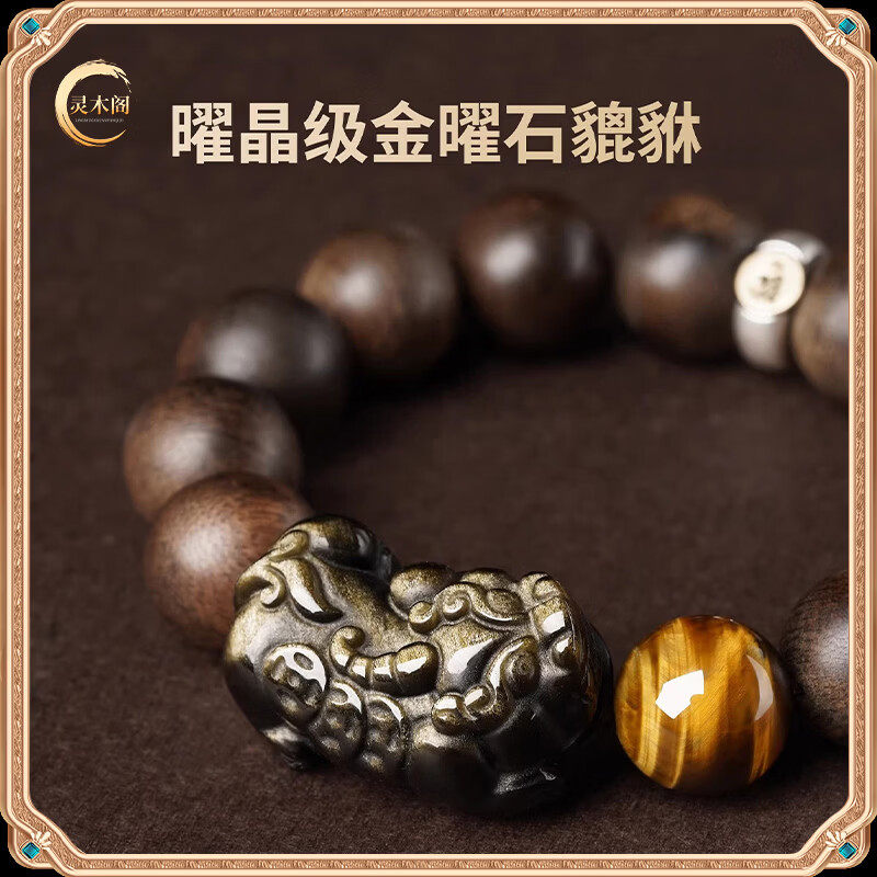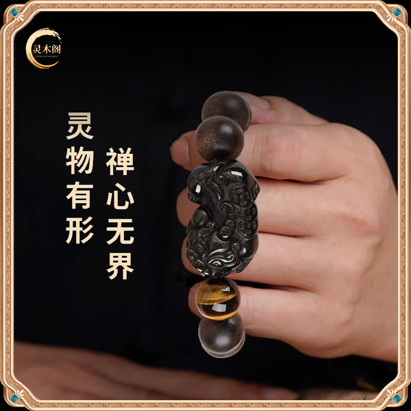天然奇楠沉香手串男款黑曜石招财貔貅手链女生肖马年木质文玩佛珠