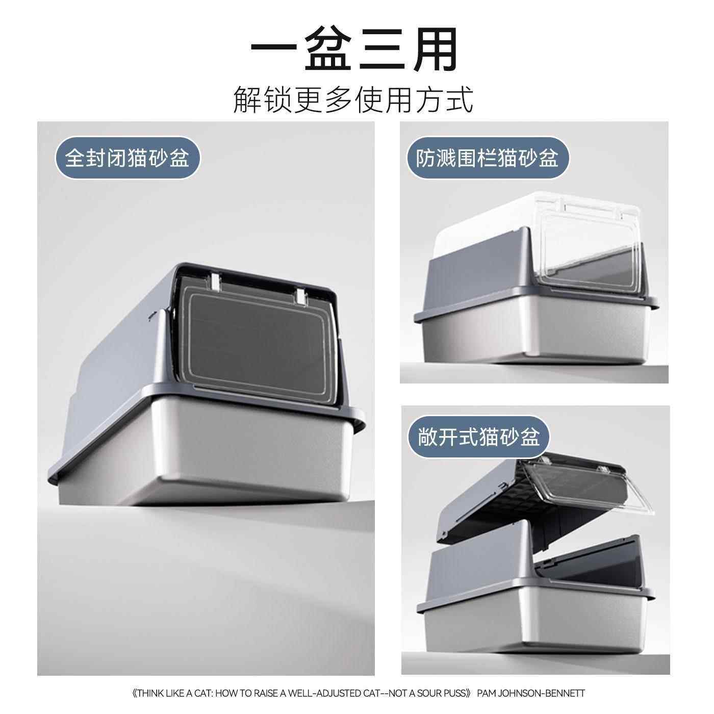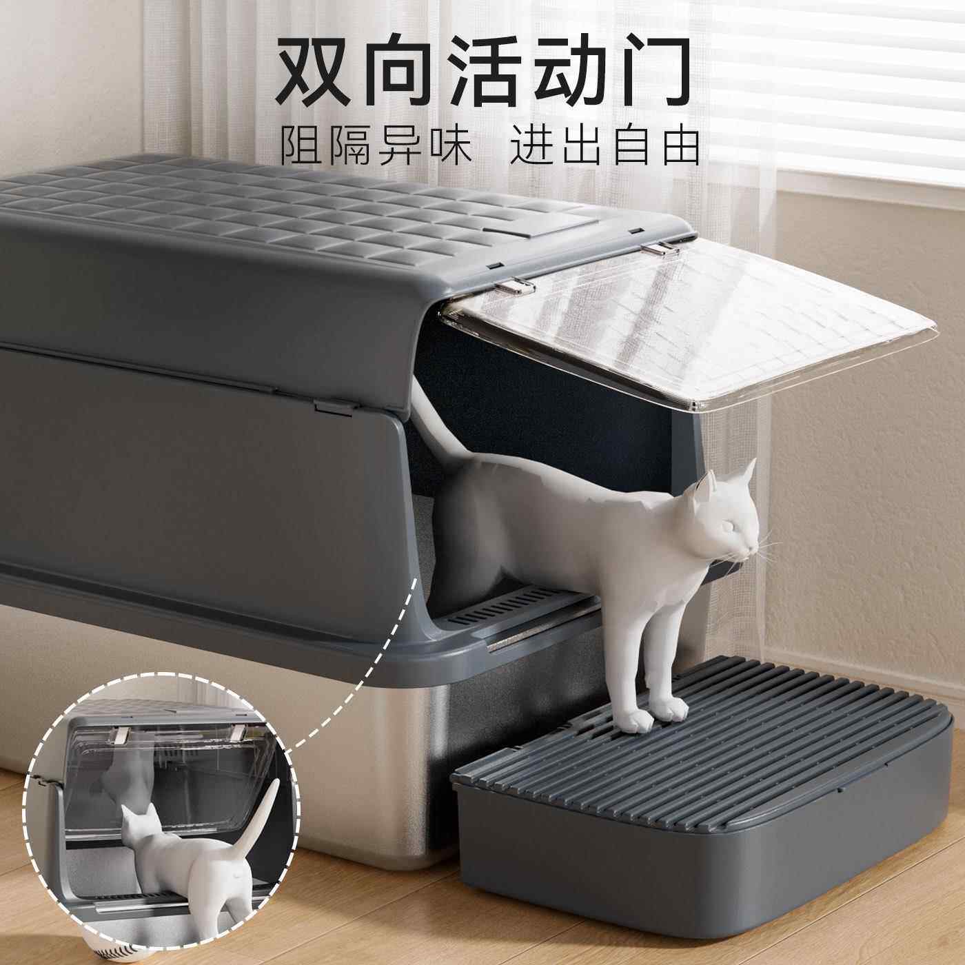 超大号不锈钢猫厕所缅因猫多功能猫砂垫加高全封闭式防外溅猫砂盆