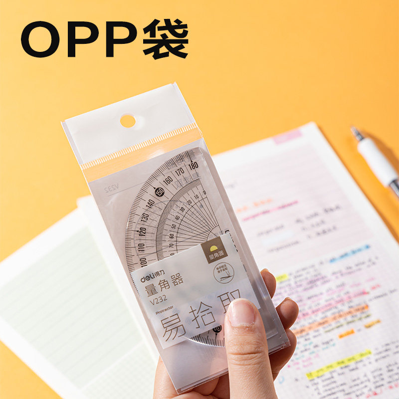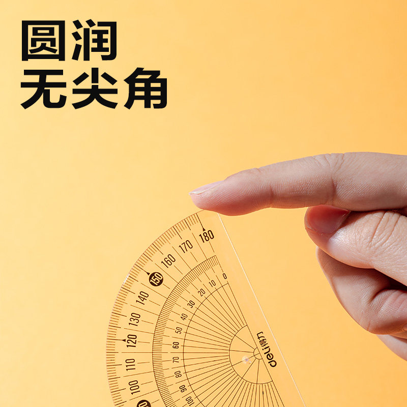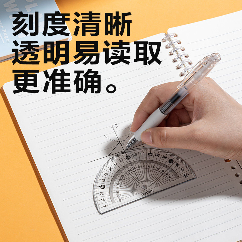 得力小学生透明塑料量角器加厚高清晰半圆尺180度绘图角度尺360度