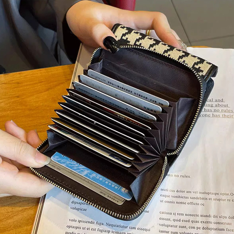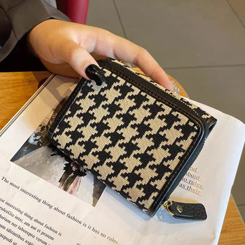 千鸟格小众设计卡包钱包一体包女短款2025新款爆款折叠皮夹小钱包