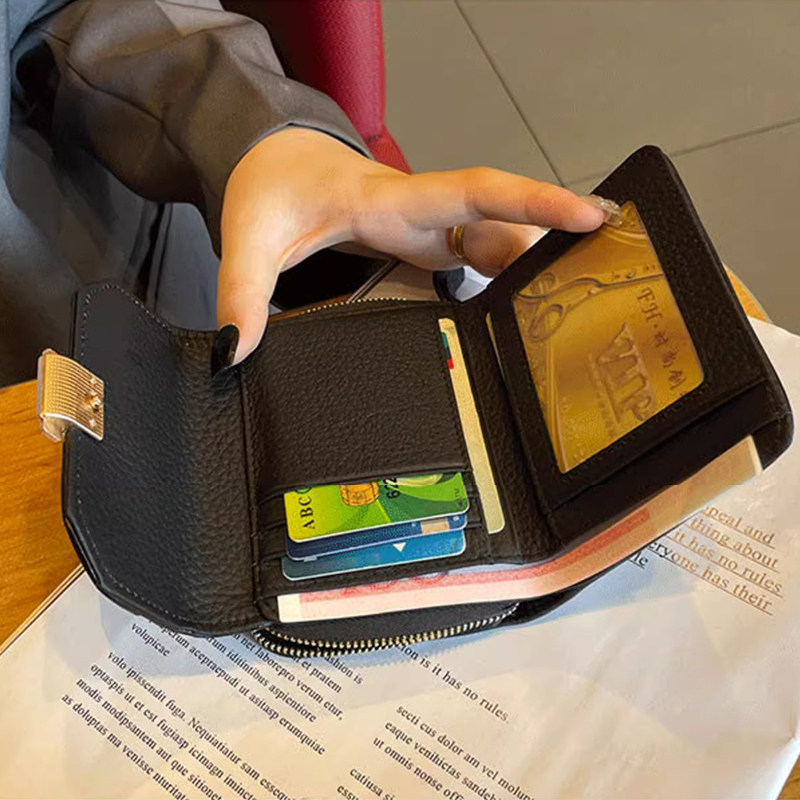 稻草人钱包女真皮黑色钱夹小巧小众高级感零钱包牛皮精致皮夹卡包