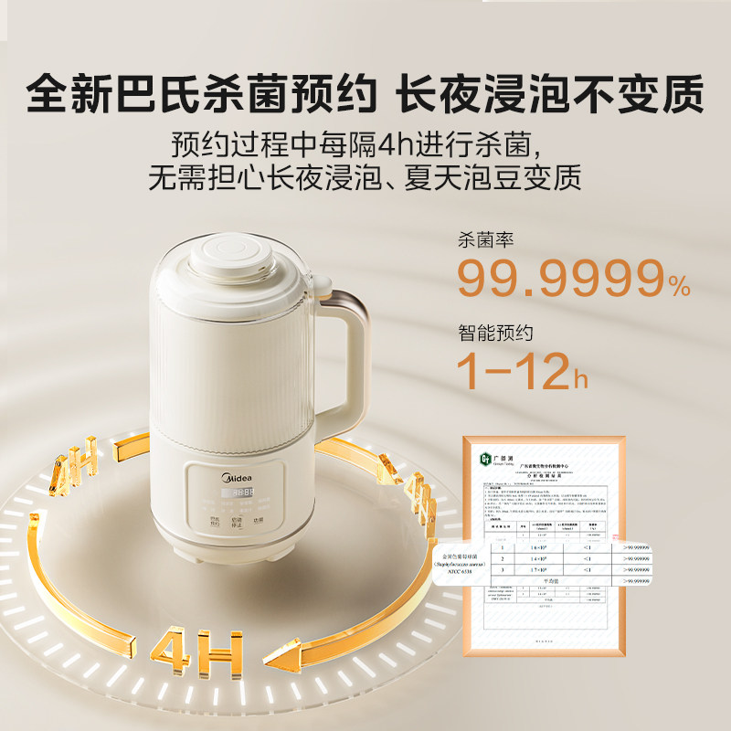 美的豆浆机家用全自动免煮轻音小型破壁机无渣免过滤官方正品新款