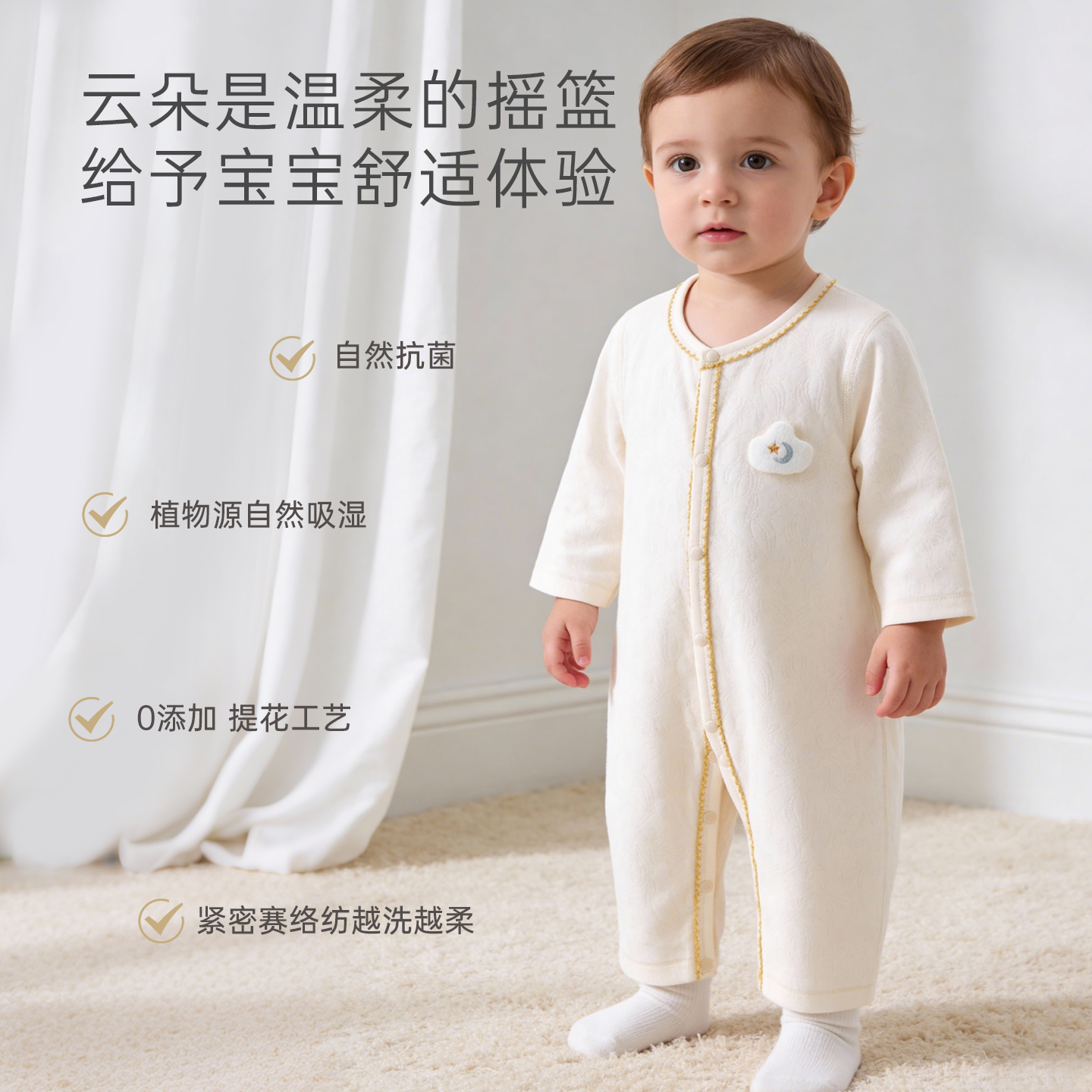【抑菌木棉】婴幼儿长袖连体衣春秋季宝宝提花哈衣居家爬爬服春装