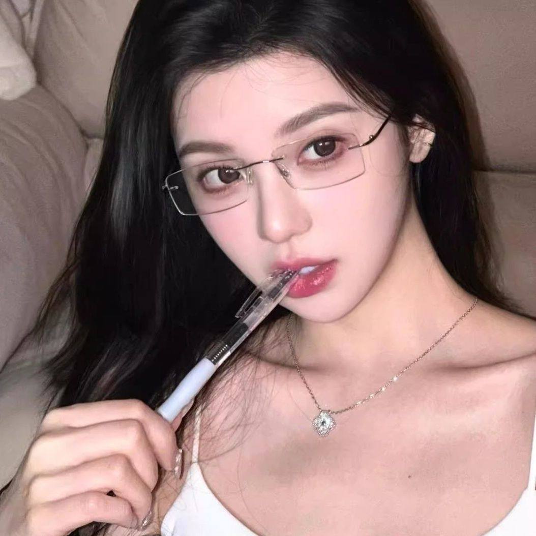 无框纯钛眼镜女高智感近视镜纯欲超轻无边框防蓝光眼镜架镜框专业