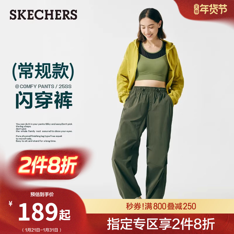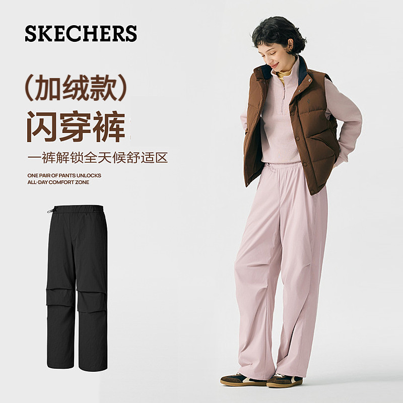 斯凯奇闪穿裤|伞兵裤女装柔软保暖裤春季运动裤工装裤长裤直筒裤