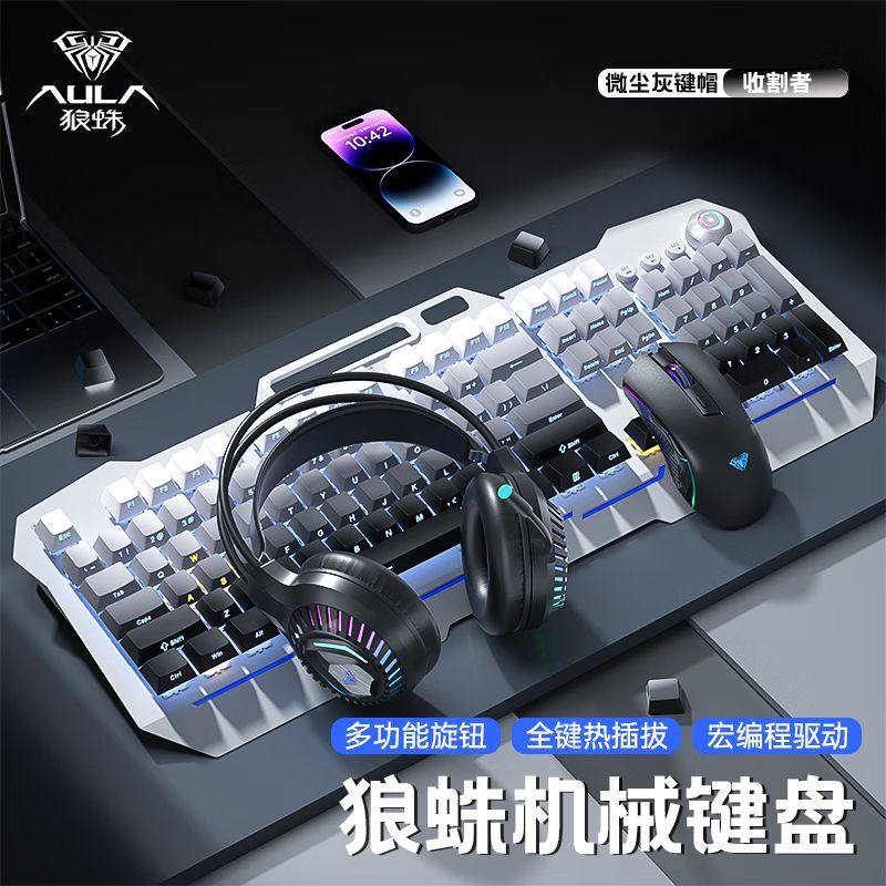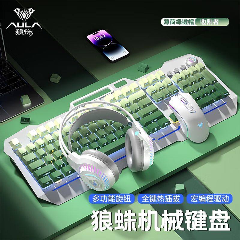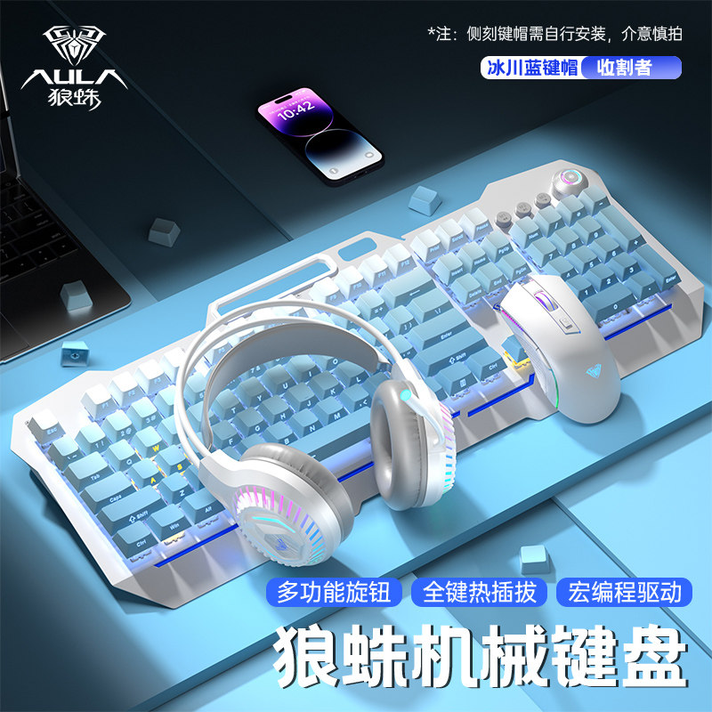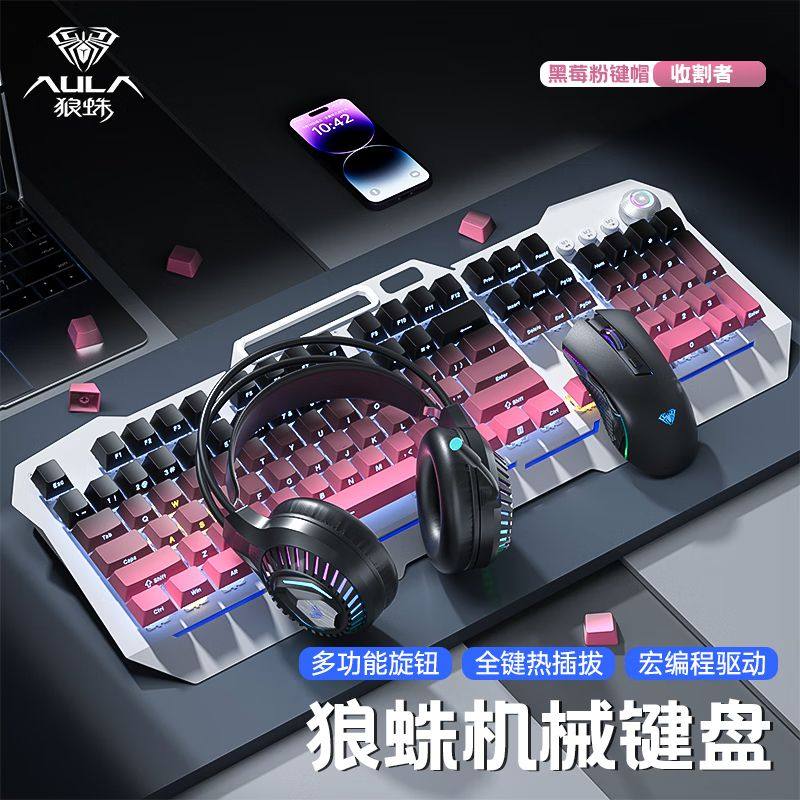 狼蛛收割者青轴热插拔升级版渐变侧刻有线机械键盘游戏电竞用键盘