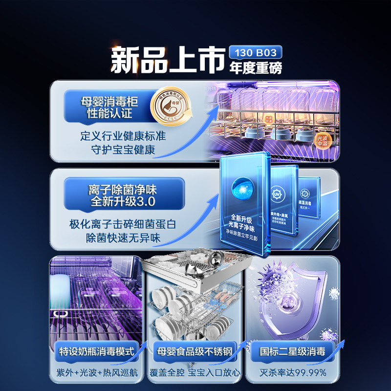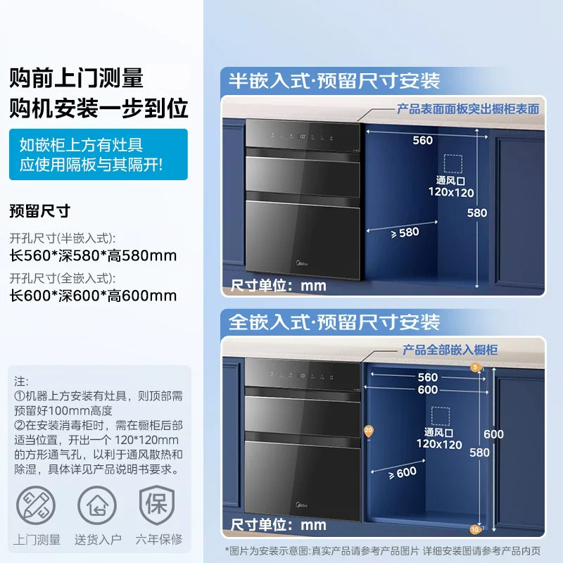 美的母婴灭菌舱消毒柜家用嵌入式大容量碗筷餐具烘干一体机130B03