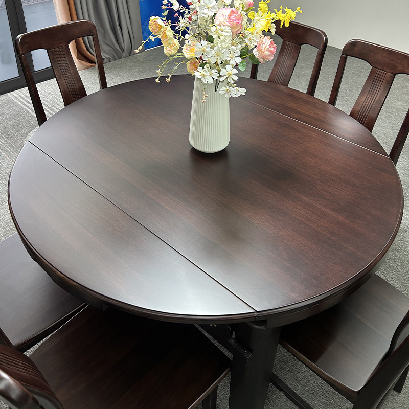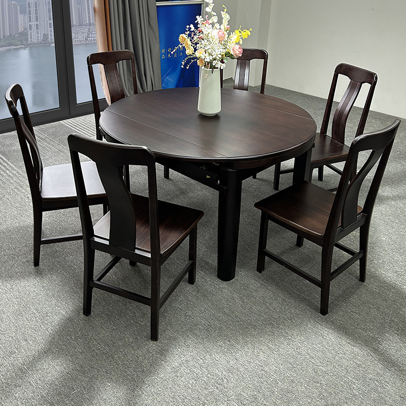 全实木伸缩餐桌新中式乌金木现代小户型家用餐厅跳台折叠饭桌桌子