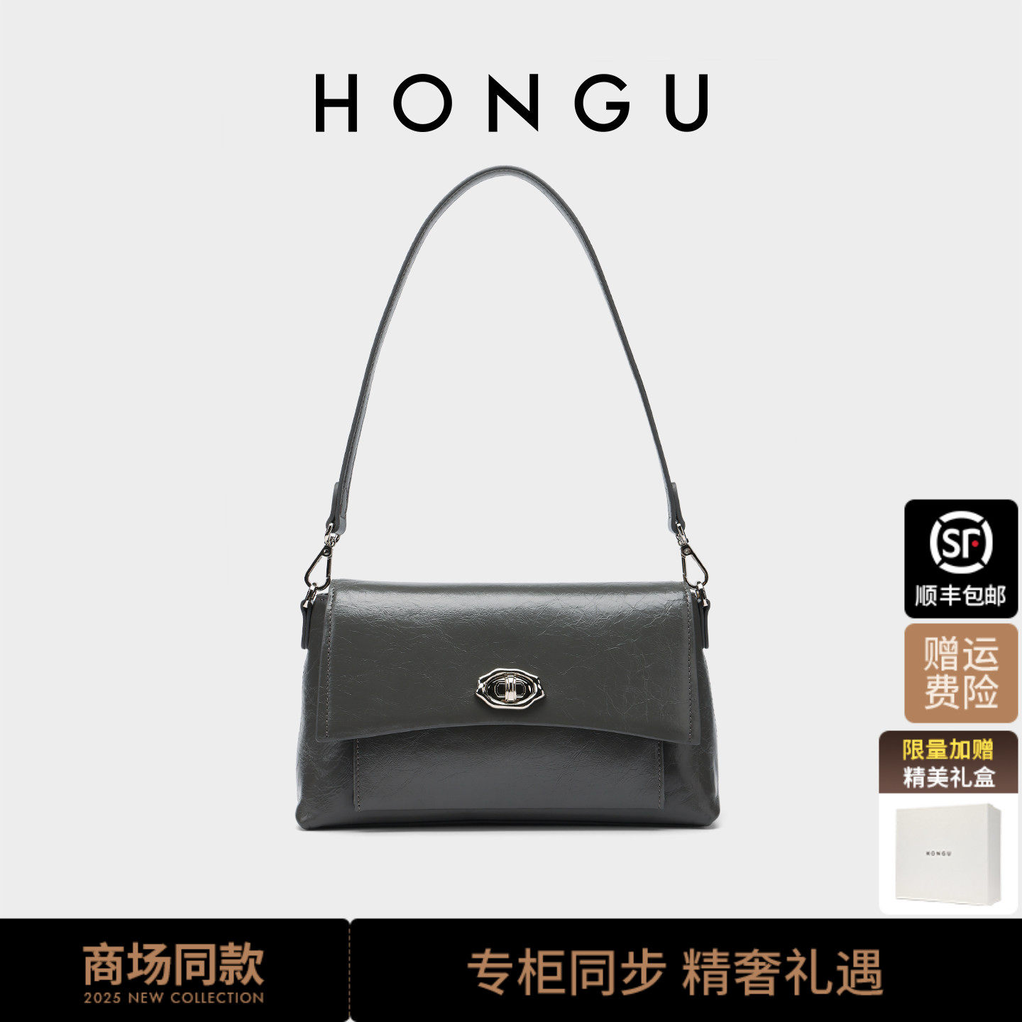 红谷包包2025新款油蜡真皮单肩腋下包时尚高级感斜挎小方包女士包