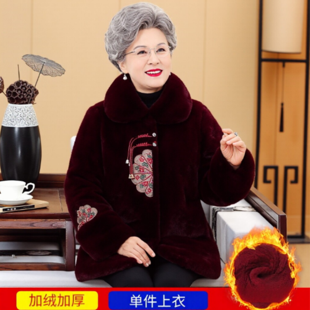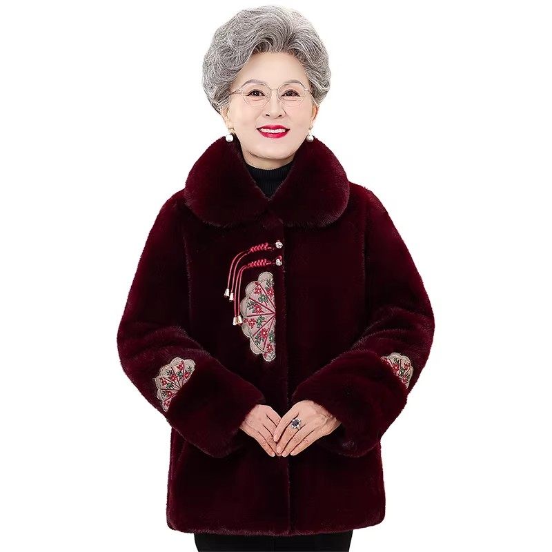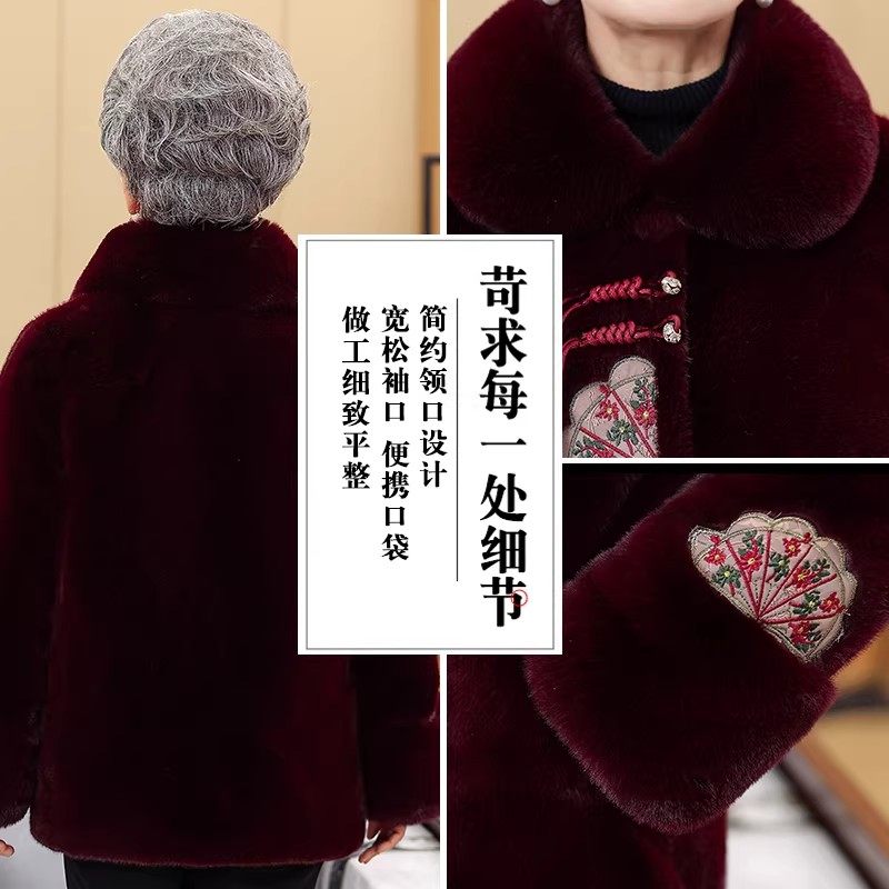 中老年人冬装女大衣妈妈水貂绒衣服老太太棉袄奶奶冬季加绒厚外套