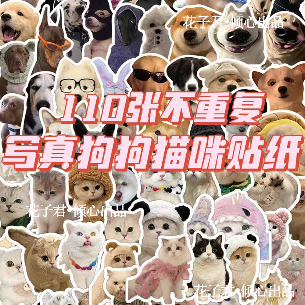 110张写真狗狗猫咪贴纸ins风超萌可爱装饰笔记本手账贴画自粘